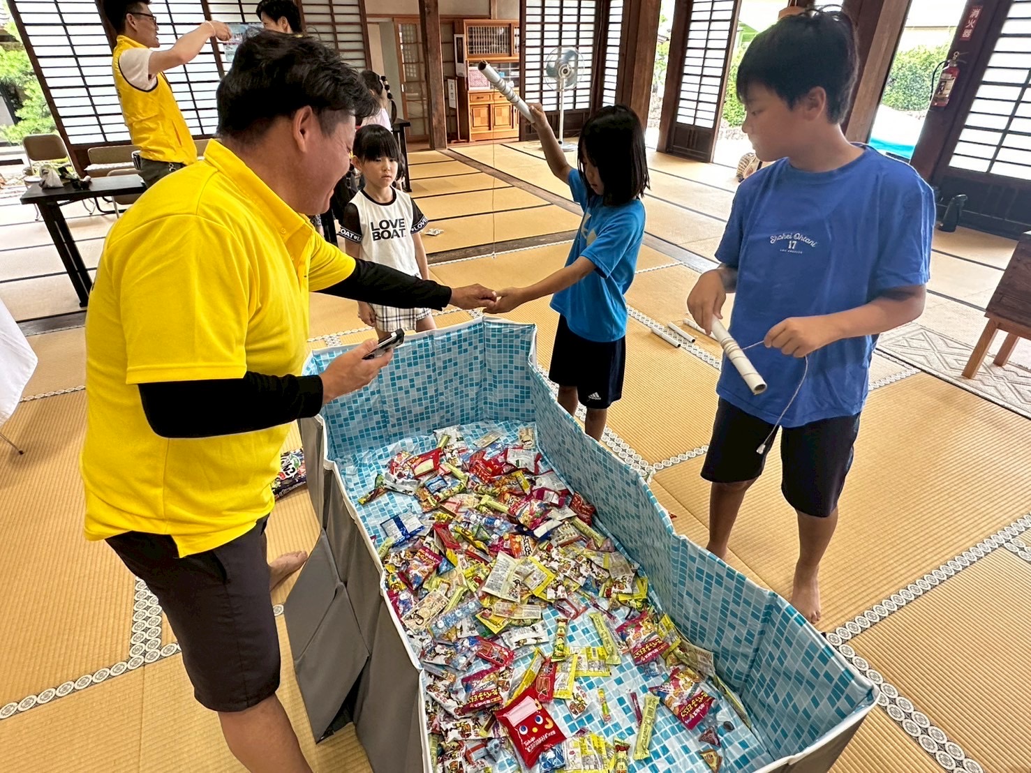 催し物として大人も子どもも楽しめる輪投げやお菓子すくいを行いました🍪